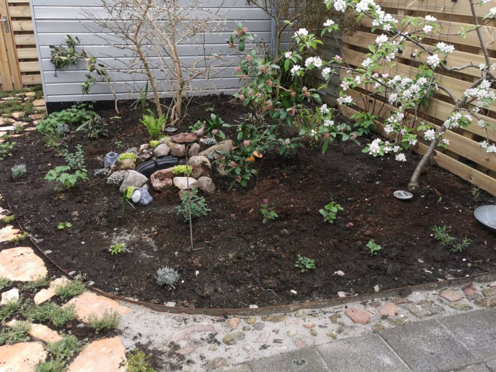 Met de juiste vakkennis en ervaring van de bijenvriendelijke hovenier is veel mogelijk! Zo ook deze inpassing in een bestaande tuin, waarbij met natuurlijke vormen en stenen gecombineerd met bloemen en planten een bijen en insecten vriendelijke tint is gegeven aan deze tuin.